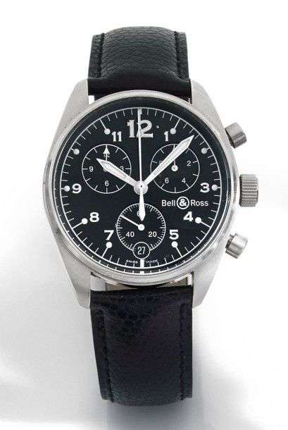 Modèle chronographe en acier 3 compteurs. Cadran noir, chiffres arabes, aiguilles squelettes. Mouvement quartz, fonctionne, bon état. Boitier fond étanche, boucle dépliante siglée. Un bracelet de rechange. Diam 38mm.