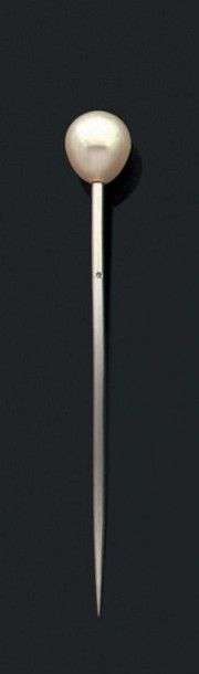 Epingle ornée d'une perle supposée fine - non testée - ovale. Diam: 6.8 a
