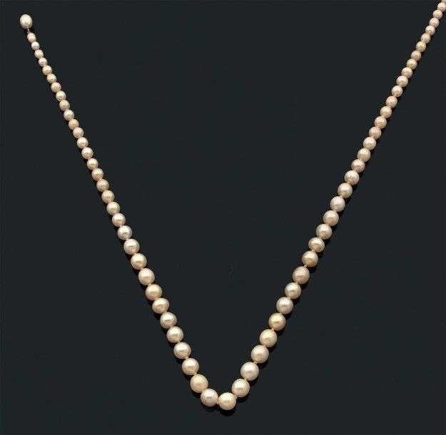 Collier composé de 69 perles fines en chute, fermoir composé d'une perle.