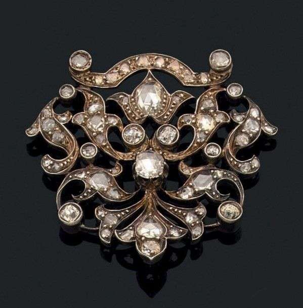 Pendentif en argent et or jaune 18k serti de diamants de taille rose. Epoq