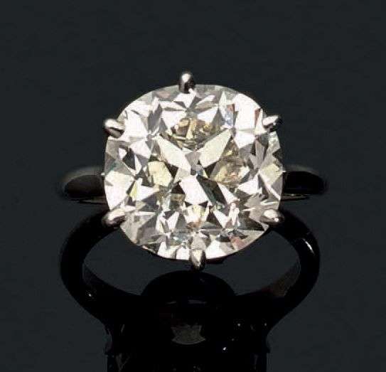 Bague en or gris 18k ornée d'un important diamant solitaire de forme coussin, de taille ancienne. Poids brut: 8.32 gr Diamant accompagné d?un certificat LFG N°34726 précisant Poids du diamant: 8.88 carats Couleur: J Pureté: VS1 A diamond and white gold ring.