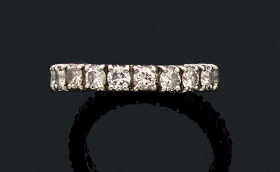 Alliance en platine sertie de diamants de taille brillant. Tour de doigt: