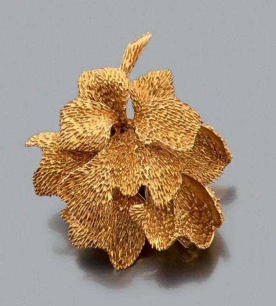 Clip "feuille" en or jaune martelé. Poids brut: 28.9gr A yellow gold brooc