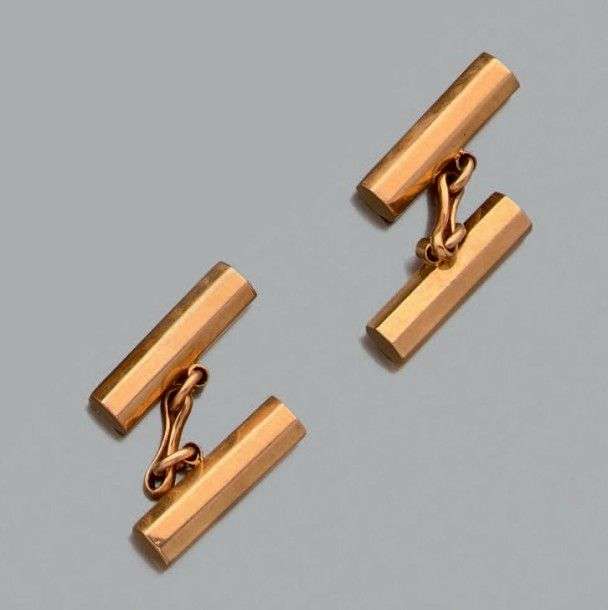 Paire de boutons de manchettes en or jaune 18k composés de batonnets facettés. Poids: 5.7gr A yellow gold pair of cuff links.