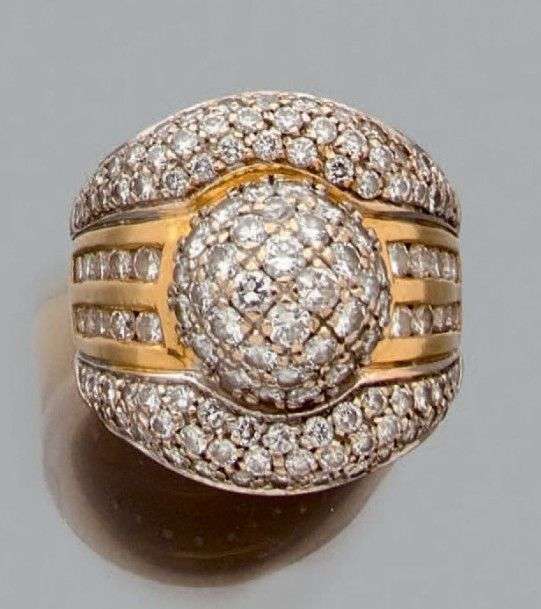 Important bague en or jaune et gris 18k ornée d'un pavage de diamants de t