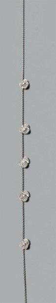 Collier en or gris 18k composé d'une chaine ornée de fleurettes serties de brillants. Signé et numéroté. Poids brut: 5 gr A diamond and white gold necklace by De Beers.