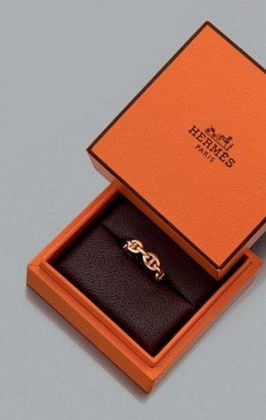 Bague "chaine d'ancre" en or jaune 18K. Signée et numérotée. Dans son écrin. Tour de doigt: 53 Poids brut: 3.82gr A yellow gold ring by Hermès.