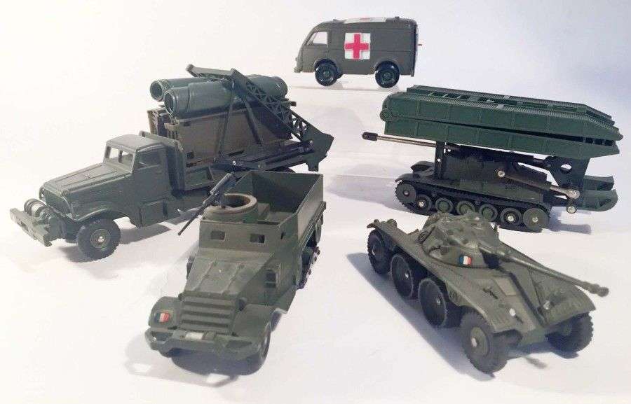 comprenant un HALFTRACK US M3 ref 822, un EBR PANHARD ref 80A, une ambulance RENAULT CARRIER ref 807, un camion BROCWAY ref 884, un char AMX poseur de ponts ref 883 manque chenilles