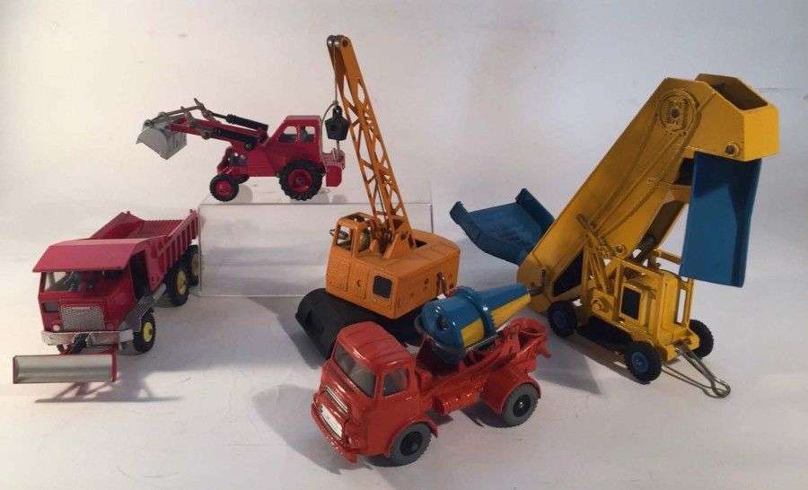 comprenant un camion ALBION CHIEFTAIN ref 960L, un camion FODEN DUMP TRUCK ref 959, un chargeur MUIL HILL 2WL ref 962L, une grue COLES MOBIL CRANE ref 972, un élévateur LOADER ref 964