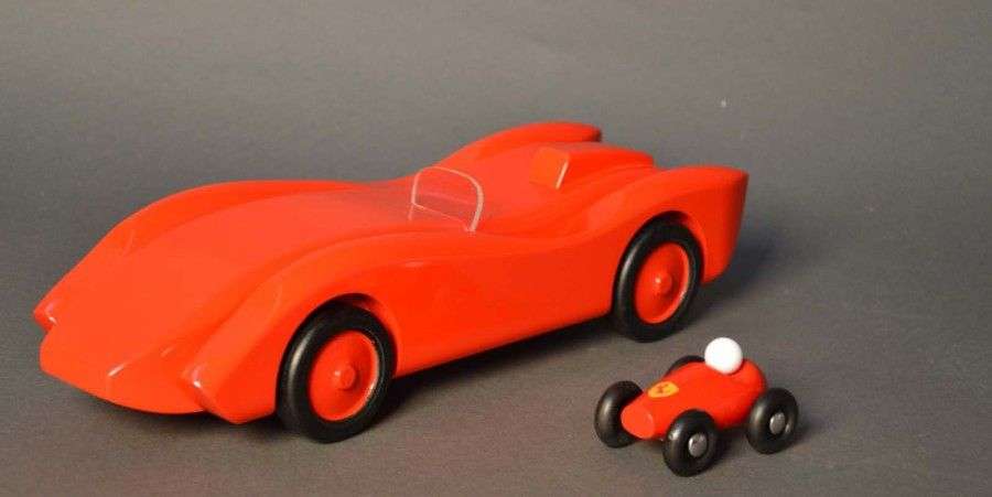 en bois laqué rouge simulant une Ferrari Testa Rossa par VILAC.
