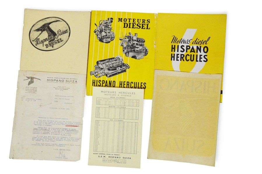 Lot de documents HISPANO SUIZA ainsi qu'un autocollant d'époque