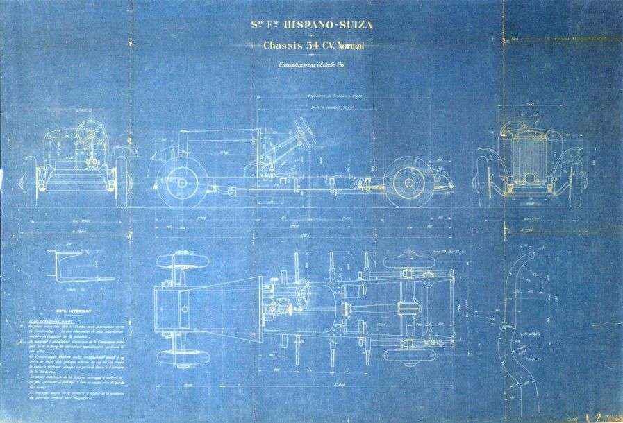 schéma technique du chassis de la 54 CV,