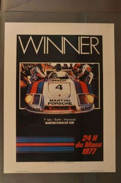 Affiche repro victoire Porsche 936 au 24h du Mans 1977 50 x 66 cm (très bon état)
