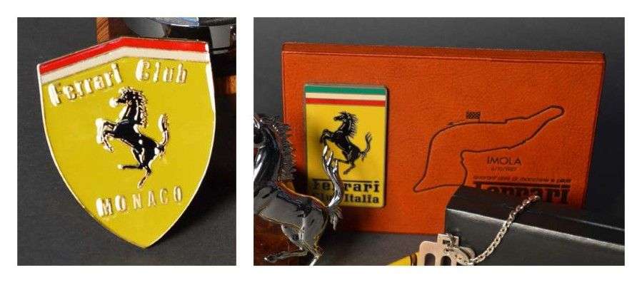 Lot comprenant un badge de calandre Ferrari Club de Monaco et une plaque a