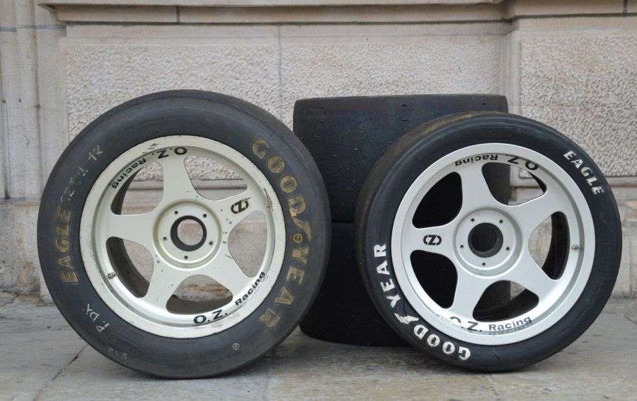 de marque O.Z. Racing pour Ferrari F40 avec pneus slick de marque GoodYear - état d'usage.