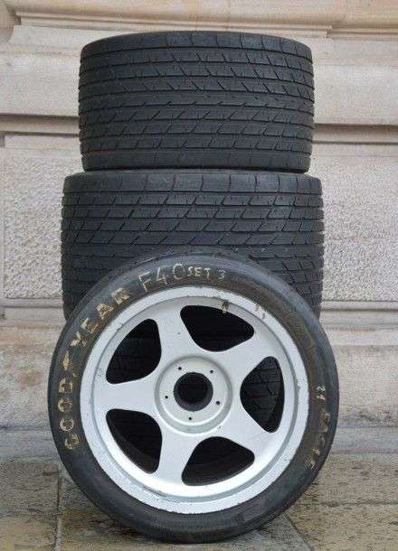 de marque O.Z. Racing pour Ferrari F40 avec pneus pluie de marque GoodYear,