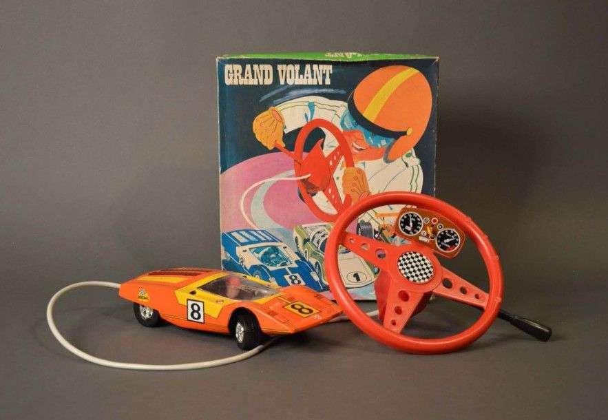 par JOUSTRA . Voiture orange portant le N°8 filoguidée. Ref 2907.