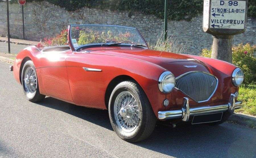 Notre exemplaire est une 100/4 BN1 de 1955, soit l'un des derniers exemplaires avant l'introduction de la série BN2. Elle fut achetée en 2010 par son actuel propriétaire dont elle a fait le bonheur au cours de différentes sorties et rallyes comme la Coupe des Alpes. Dans le pur esprit roadster, l'habitacle va à l'essentiel avec deux sièges en forme de baquets noir à liserés rouges avec harnais et des moquettes noires. Elle est également