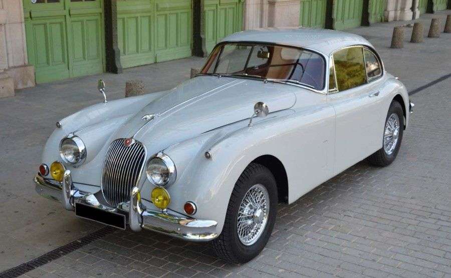 Ultime évolution de la série des XK, c'est en mai 1957 que Jaguar lance la 150 succédant ainsi à la 120 et à la 140. Elle est une évolution douce mais importante de ses aînées. Lancée d'abord en coupé et en cabriolet, la 150 voit arriver un roadster en 1958. Esthétiquement les évolutions consistent d'abord en l'adjonction d'un pare-brise bombé d'un seul tenant tout comme la vitre arrière sur le coupé. La ligne est plus fine et plus moderne mais aussi plus cossue. Techniquement, la 150 conserve l'architecture du châssis dont la suspension avant à barres de torsion longitudinales et l'essieu arrière rigide monté sur lames semi-elliptiques. Elle hérite aussi de la direction à crémaillère apparue avec la XK140 mais bénéficie et c'est une première, de freins à disque de série. Le moteur est le 3,4 litres de 190 chevaux et une culasse spéciale permet de monter à 210 chevaux. Il est accouplé une boîte manuelle à 4 rapports complétée en option d'un overdrive ou une Borg Warner automatique à trois rapports. Dès l'année suivante, une version S du moteur 3,4 litres est lancée avec trois carburateurs SU HD8 permettant de développer 250 ch. Fin 1959, Jaguar ajoute à son catalogue un tout nouveau moteur de 3.8 l de 220 ch ou 265 ch dans sa variante S. C'est au total 9 382 exemplaires de la XK 150 qui auront été produits, en grande majorité pour être exportés aux Etats-Unis. Dès 1961, la XK 150 laissera sa place à ce qui va devenir un autre mythe de l'Automobile, la Jaguar type E.