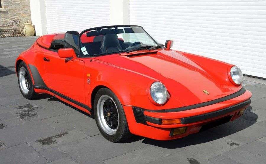 Présenté au salon de Francfort 1987, le Speedster Porsche est une variante carrosserie de la 911 Carrera 3,2 litres qui a commencé sa carrière en 1983. La mécanique de ce cabriolet de sport que Porsche appelle Speedster est en effet strictement identique à la version classique. Il dispose d'un 6 cylindres à plat atmosphérique de 3,2 litres de cylindrée développant 231 chevaux couplé à la boite de vitesse G50 à 5 rapports. L'écrin qui l'accueille est lui beaucoup plus exclusif. Clin d'oeil à l'histoire de la 356, ce Speedster se caractérise par un petit pare-brise très incliné et un couvre capote qui est un carénage articulé, évoquant par sa forme un double appui-tête profilé. Le tout donne une silhouette très ramassée, particulièrement lorsque la voiture est capotée, pour autant, dans le même dessin Porsche a réussi l'exploit d'éviter la sensation de confinement. C'est cette ligne résolument sportive qui a séduit les clients de l'époque, lesquels ont pour la plupart opté pour une sportivité encore exacerbée en choisissant le fameux pack « Turbo Look ». Ils avaient alors le choix entre deux versions de carrosserie: la caisse étroite et la caisse large. Exclusif de par son design, le Speedster l'est aussi de par sa faible diffusion. L'aérodynamique de la voiture permet de rouler décapoté à vive allure sans craindre les remous liés à la vitesse. Cette déclinaison stricte deux places, offre un gain de poids de près de 70 kg par rapport au cabriolet Carrera contemporain. Seulement 2104 privilégiés ont eu l'audace de passer commande de cette version radicale de la Porsche 911 3L2. Inévitablement un vrai collector...