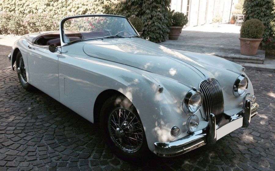 XK 150 S ROADSTER 3.4L EX GERARD LOUVIN C'est en Mai 1957 que s'ouvre le troisième acte de l'aventure XK avec la sortie de la « 150 » en coupé et en cabriolet. Le roadster aux lignes si évocatrices se fait attendre et ne sera présenté qu'un an plus tard. Tandis que la XK140 était une évolution de la XK120, la XK150 est une voiture profondément revue. L'un de ses arguments est bien entendu les quatre freins à disque Dunlop qui rendent cette belle auto bien plus facile à conduire. La Type-D victorieuse en 1954 était équipée des mêmes freins. Côté style, le décroché si caractéristique des XK laisse place à un galbe tout en finesse et élégance. La ceinture de caisse est augmentée, faisant de cette réelle XK une auto plus sûre et plus confortable Disponible en boîte manuelle Moss à quatre rapports ou en Borg-Warner automatique, beaucoup de modèles à transmission mécanique sont équipés de l'overdrive. La version « S », munie de culasses « Straight Ports » aux conduits d'admission rectilignes, promet une impressionnante puissance. Grâce à trois carburateurs horizontaux SU HD8, la puissance du six-cylindres de 3.4 litres de cylindrée s'élève à 250 chevaux. En 1960, John Bolster de la revue britannique Autosport, réalise 19 secondes au 0-160 Km/h à bord d'une XK 150 S, une performance exceptionnelle pour l'époque. Avec 2265 roadsters, 2671 cabriolets et 4462 coupés, la XK 150 connut un succès important dans l'histoire de Jaguar, avant l'avènement de la mythique Type-E. Notre exemplaire, un très beau roadster 3.4, est une très prisée et rare version S. Il est proposé dans une seyante livrée blanc perlé mariée à un intérieur en cuir rouge d'une superbe patine. Une capote noire, un couvre tonneau et des roues fils viennent compléter l'ensemble. Selon le Jaguar Heritage, la voiture fut fabriquée en mars 1959 et livrée neuve à New York en mai de la même année, il certifie également que la voiture est « matching » moteur et caisse. Elle est dotée d'une boite de vitesse mécanique a