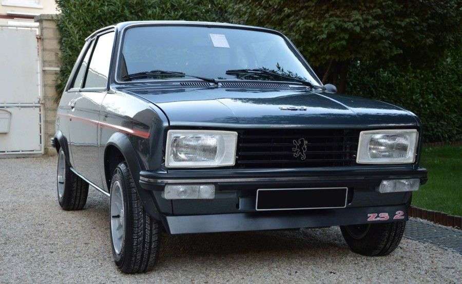 Au salon de Paris de 1972, Peugeot présente la 104 Berline. Le but est d'élargir la gamme avec une citadine économique. Dès l'année suivante, la marque au lion sortira une version coupé plus courte que la 4 portes. Sa ligne typiquement Seventies ne manque pas d'élégance et la participation de Pininfarina à son dessin n'y est sans doute pas étrangère. C'est en 1976 que sera proposée une version sportive de ce coupé, dénommée ZS. Trois ans plus tard une petite série encore plus affutée verra le jour: la 104 ZS2. Commercialisée entre janvier et mars 1979, elle fut produite dans le but d'une homologation en groupe 2. Cette série est limitée à seulement 1000 exemplaires. Elle est dotée du moteur en alliage léger avec distribution par chaine et arbre à cames en tête de la 104 ZS, portée à 1360 cm3 de cylindrée. Ce bloc développe 93ch grâce à deux carburateurs Solex double corps, une culasse particulière et un arbre à cames modifié. Pour plus de rigidité le châssis de la SZ2 est également renforcé. Le poids de l'auto inchangé et limité à 780 kilos, les performances sont de 1er plan et font de la SZ2 une machine à plaisir. La 104 ZS2 bénéficie de plus d'une dotation spécifique caractéristique, permettant de la distinguer du reste de la gamme. Elle est reconnaissable à sa livrée unique, associant une carrosserie de couleur gris vulcain agrémentée d'une bande latérale rouge de chaque côté de la voiture, à un intérieur en tissu noir à bandes rouges. Des décorations ZS2 rouges sont placées sur le spoiler avant et le hayon arrière. L'aspect sportif de la ZS2 est renforcé par l'adoption d'élargisseurs d'ailes en plastique noir mettant en valeur de belles jantes Amil de 13 pouces, et d'un rétroviseur de type obus dans la même matière. L'équipement de la ZS2 comprend également un compte-tours et surtout un tachymètre gradué jusqu'à 200 km/h, très révélateur de ses aptitudes et ambitions pour cette aînée de la 205 GTI.