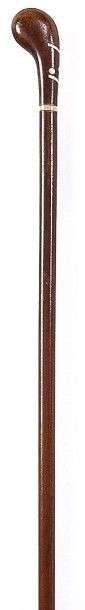 Canne à poignée mailloche en bois, décorée en façade de retombée, d'incrus