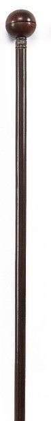 Canne à musique mécanique, pommeau en bois, forme sphérique en deux partie