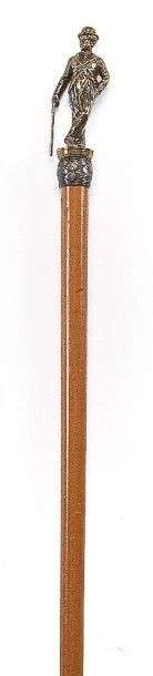 Canne humoristique à poignée en bronze nickelé représentant «Charlot en pi