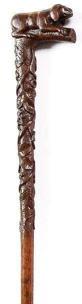 Canne d'art populaire monoxyle à poignée équerre sculptée d'un chien rondo