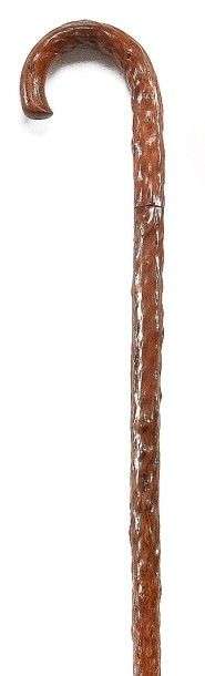 Canne- dague à lame rectangulaire (26cm) à un dos et un tranchant bombé à gouttière au ¼ de début, au ¼ suivant une encoche, le reste à dents de scie, verrouillage à bouton poussoir, poignée courbe et fût en néflier sauvage scarifié, férule en acier.
