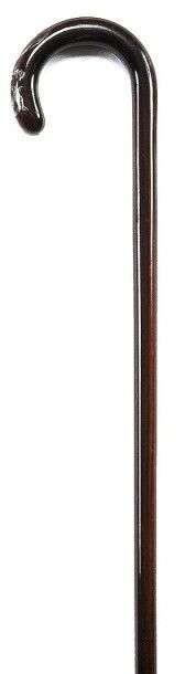 Canne en palissandre à poignée courbe incrustée en bout d'une fleur de per