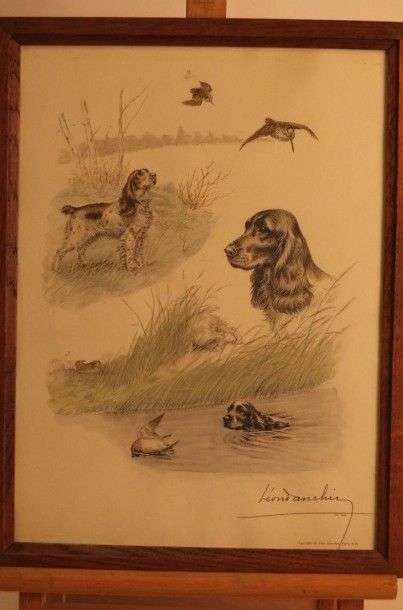 « Chiens de chasse » 2 tirages.Sous verre.Cadres en bois.35,5 x 26 cm