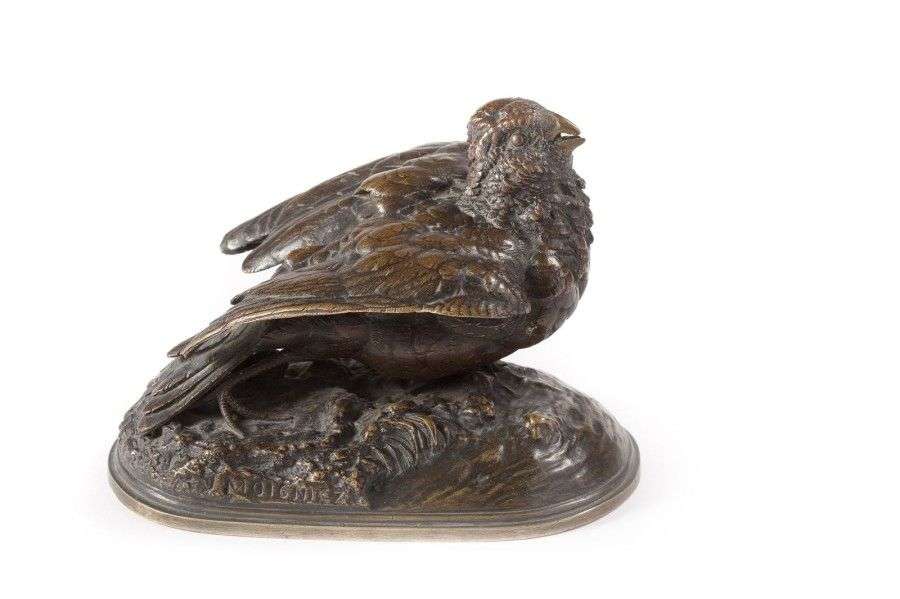 « Perdrix » Bronze à patine médaille, signé sur la terrasse.
