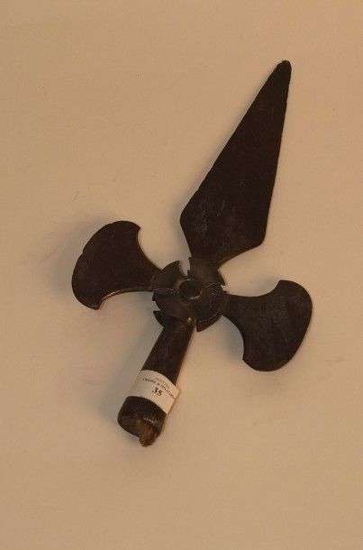 Pique, en fer forgé, à deux tranchants, à deux fer de hache à la base.