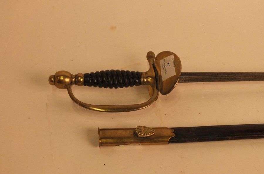 Fourreau en cuir, à deux garnitures en laiton.