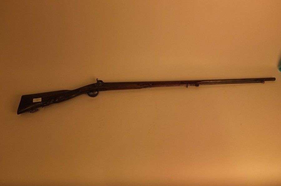 Crosse à jou,e en noyer, sculpté d'une hure de sanglier.