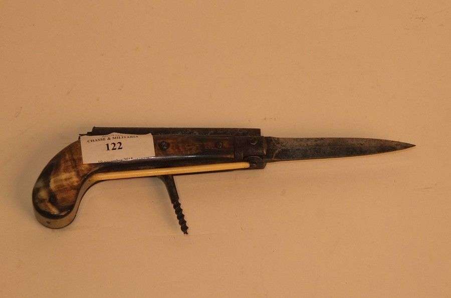 Pistolet à percussion, couteau à lame pliante.