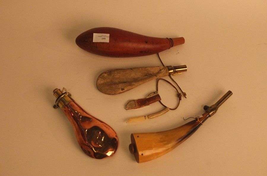 Lot de 3 poires à poudre, 1 poire à plombs.