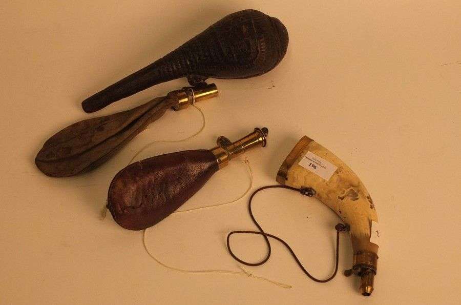 Lot de 3 poires à poudre et 2 poires à plombs.