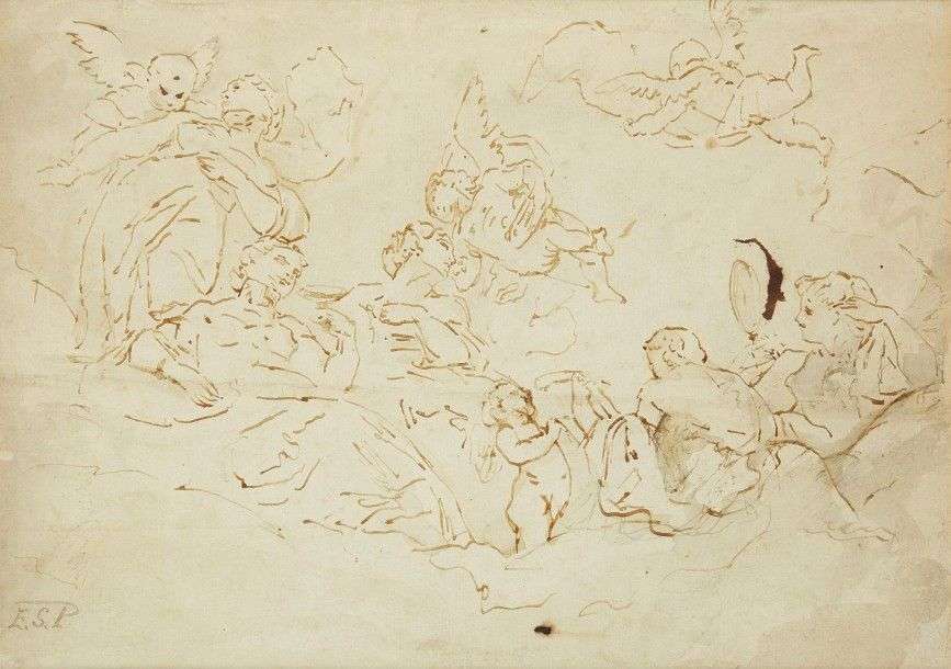 Plume et encre, monogrammée ESP en bas à gauche