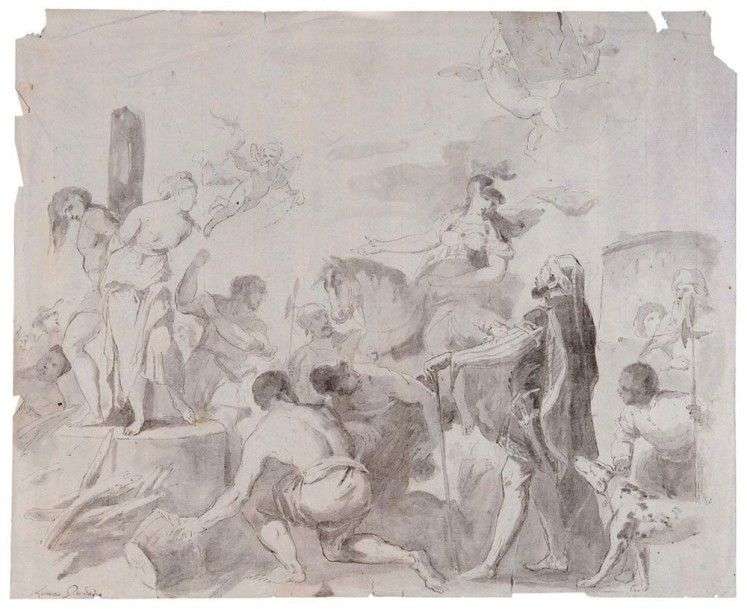 Dessin d'après le tableau de Luca Giordano, réalisé en 1680, conservé aujourd'hui au Palazzo Reale à Gênes