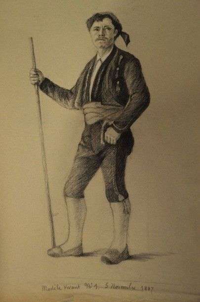 Ensemble de quatorze dessins académique au crayon et rehauts de craie sur papier
