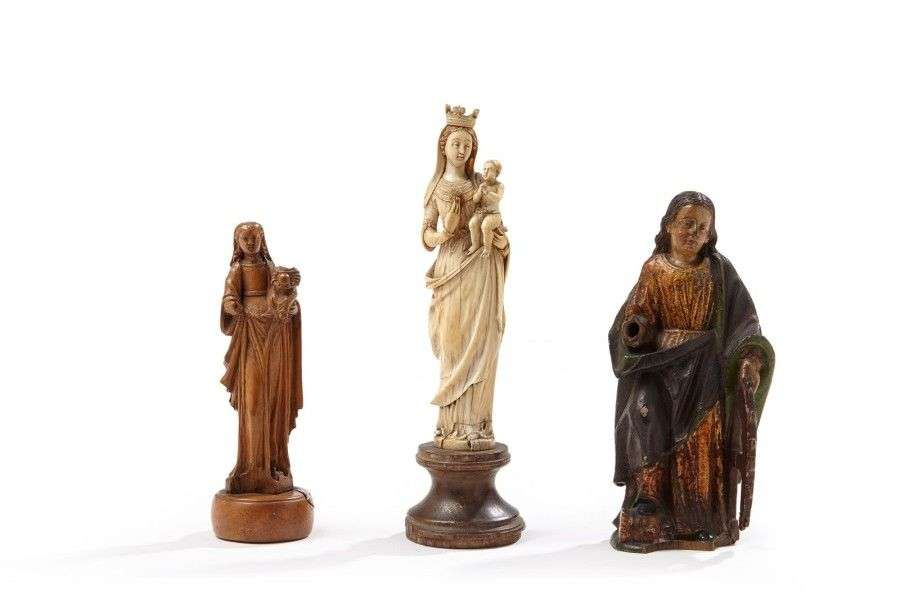 Ensemble de trois sujets religieux comprenant une vierge en ivoire, Ile de