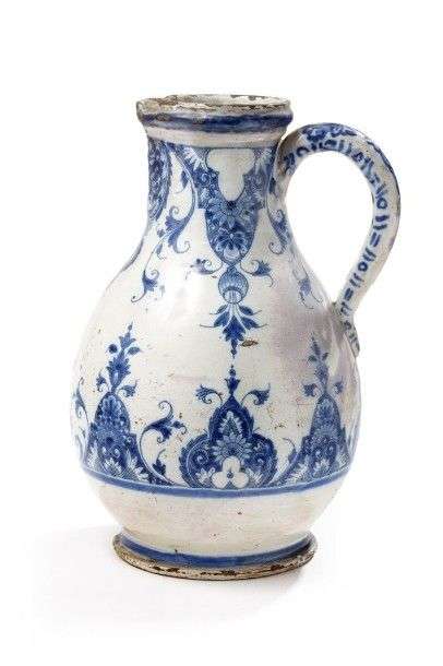 Grande verseuse en faience à décor en camaieu bleu de lambrequins