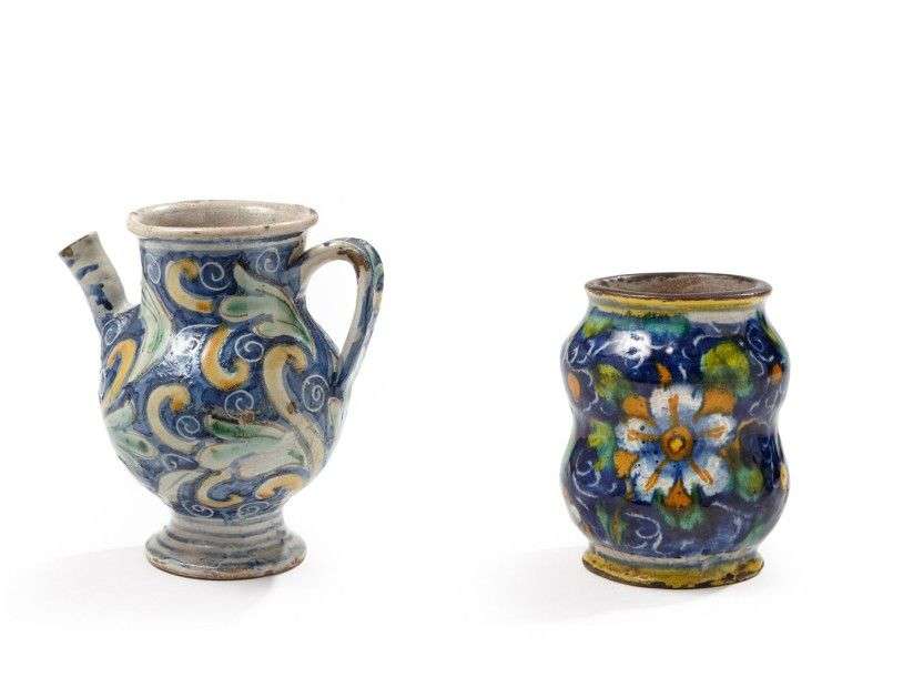 Un petit albarello à décor floral sur fond bleu, XVIIIème siècle
