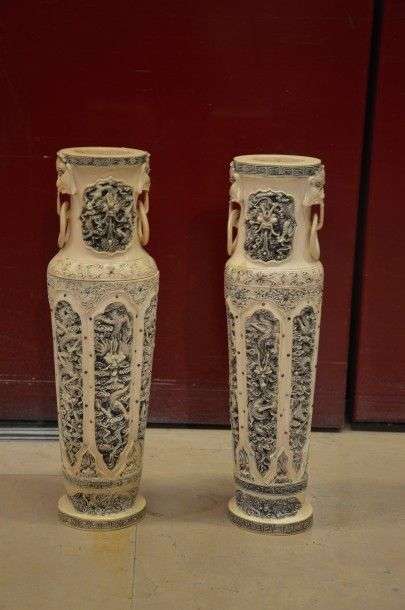 Paire de vases en ivoire