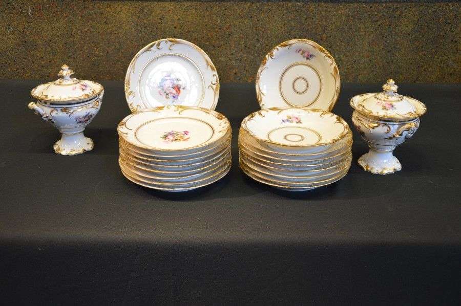 comprenant 16 assiettes, 2 confituriers et 2 plats