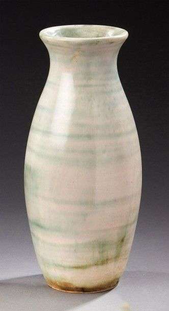 Vase ovoïde en céramique émaillée grise nuancée verte. Monogrammé "JB". H: 34,5 cm (°)