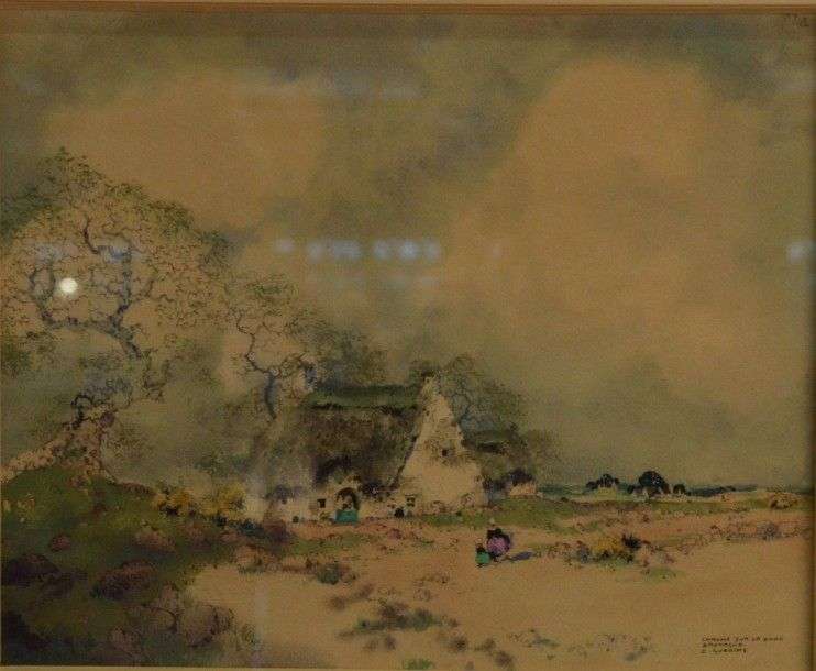 Chaume sur la dune, Bretagne Aquarelle, signée et située en bas à droite 21 x 26 cm (à vue)